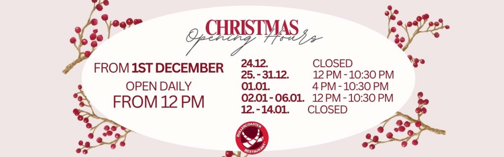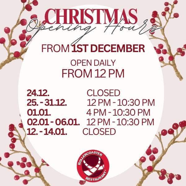 Online reservations are only possible for up to 12 people. For group reservations of 13 people or more, please send an email to: office@rollercoasterrestaurant.com.